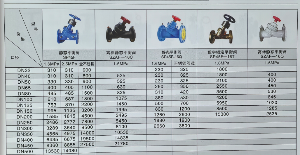 平衡閥價格表